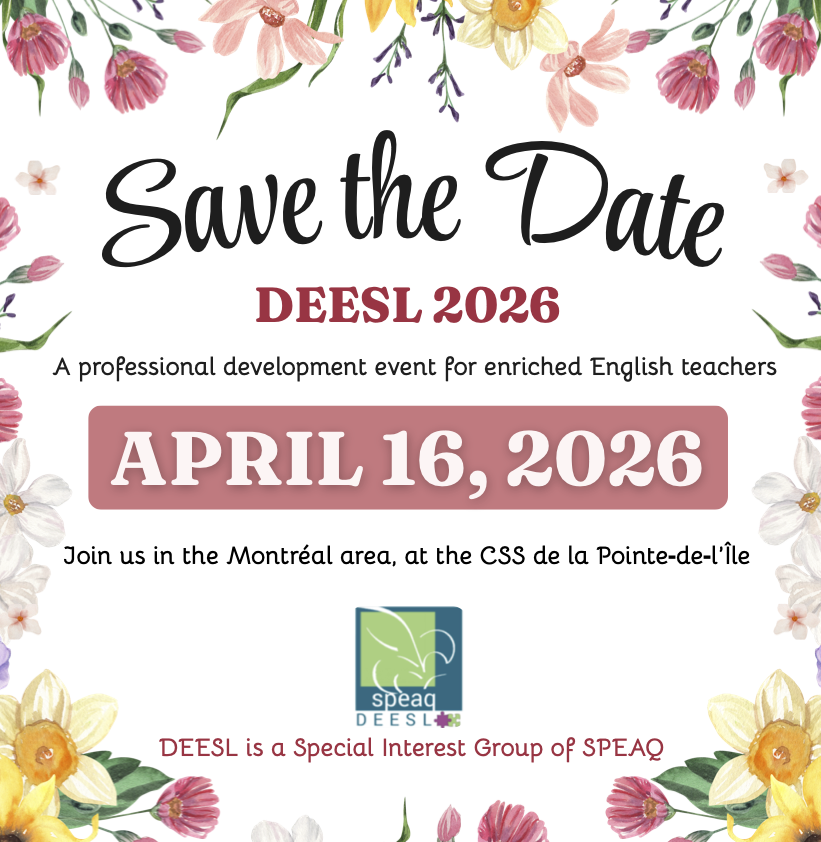 The main objective of DEESL (Development of Enriched ESL in Québec) is to support Enriched ESL teachers through the creation of competency-based activities.